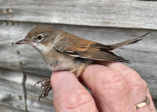 Another very productive day started with 3 Teal flying out of the gutter ( a female Pintail was also found later in the morning), and a Greenshank calling as it flew down the east side chased by a Redshank, there was thought to be another also around the islands. Willow Warblers were present right from the off, reaching double figures during the morning and probably 4 Whitethroats in the paddocks and gardens with one being ringed.